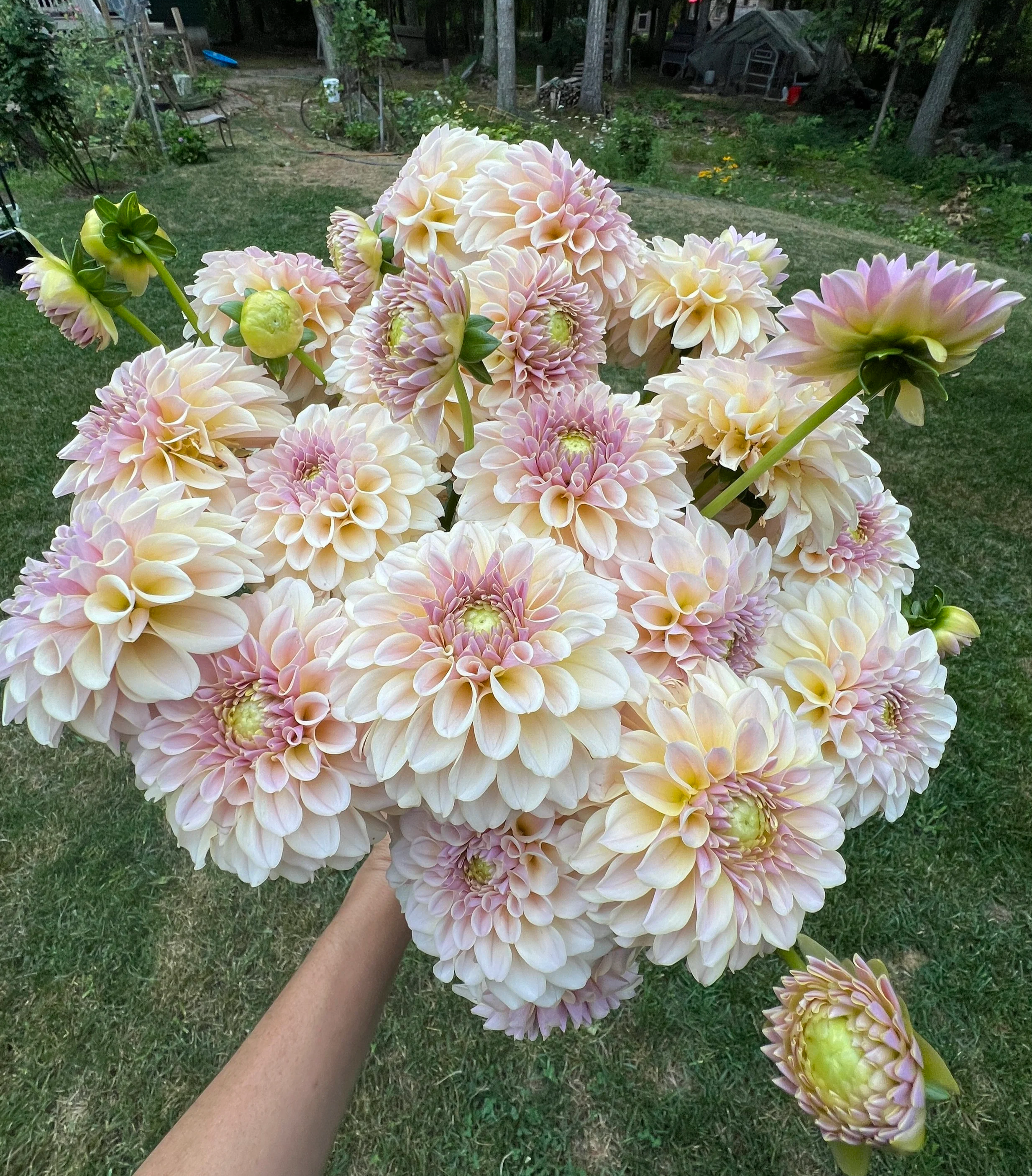 Since 2024 we have helped hundreds of people experience the beauty of flowers through bouquets at our little flower cart named (“Flora”), and through dahlia tubers we’ve shipped nationwide.